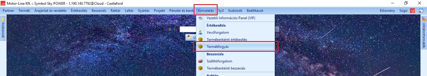 - Symbol felső menü: Termékek -> Termék aktuális árak és készlet