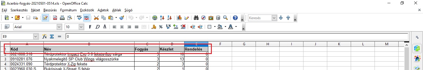 - A mappába létrehozunk egy xls-fájlt a kiválasztott gyártó és annak új fogyási dátuma alapján. (pl.: Acerbis-fogyás-20210501-0515.xls)